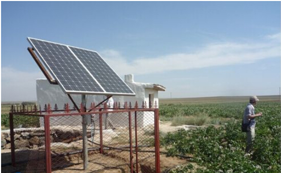 推广一种小面积上,经济,简便的滴灌系统对发展中国家具有重要示范意义。小型滴灌系统适应不同地块,安装施工简单。核心部件是太阳能潜水泵,直径5.5厘米,长37厘米,LJ10型太阳能水泵只需12W的太阳能电池板驱动就可产生最大1巴的压力,扬程最高达10米,此时流量40L/h。LJ20型太阳能水泵只需2X12W的太阳能电池板驱动就可产生最大2巴的压力,扬程最高达20米,此时流量44L/h。太阳能潜水泵除了构成太阳能滴灌系统外,还可以用于供水、发电。